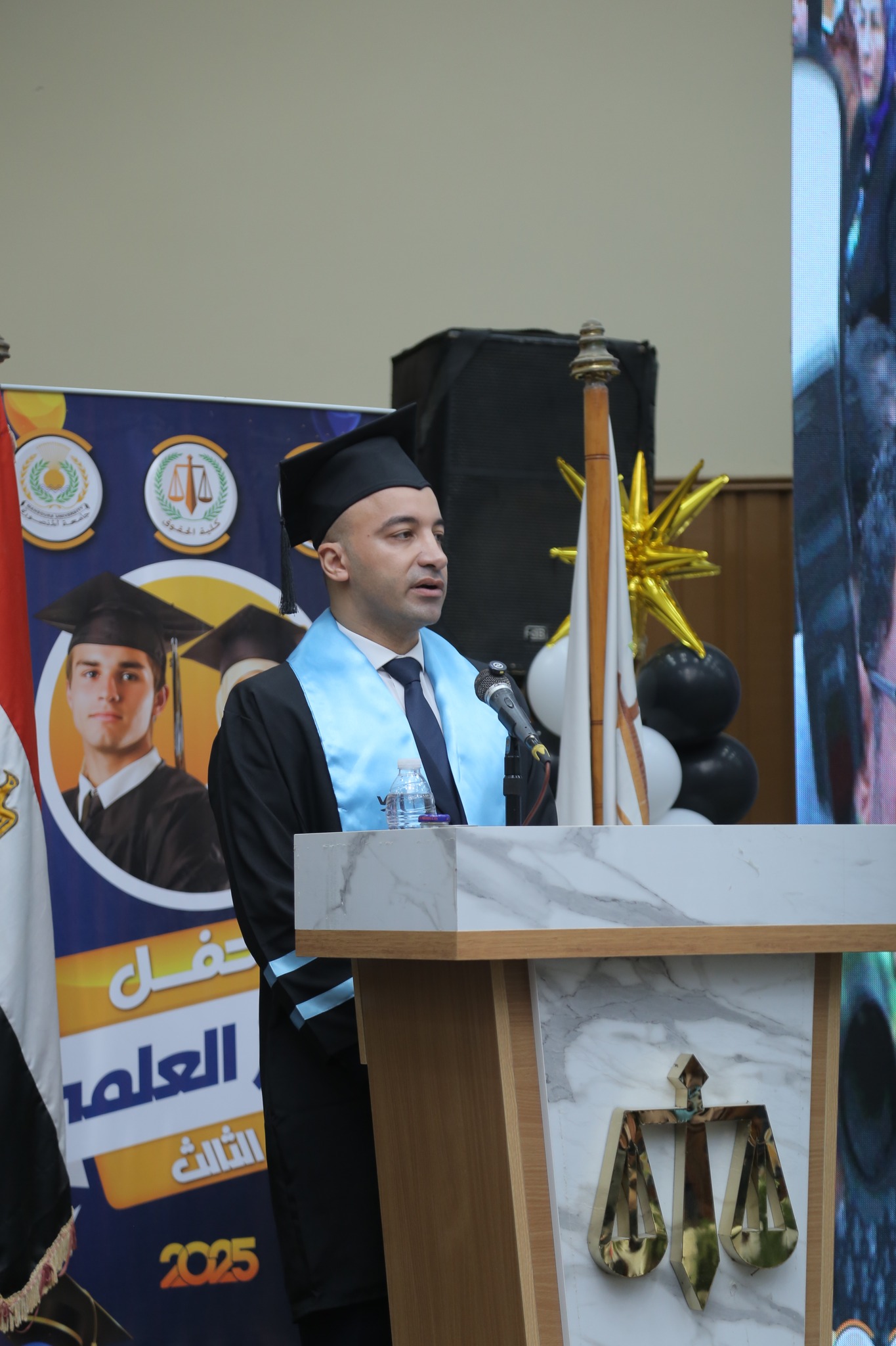 وخلال كلمته، عبَّر المقدم الدكتور أحمد رضا، ممثل الباحثين المصريين، عن بالغ امتنانه لأساتذة كلية الحقوق، مؤكدًا أنهم شركاء في نجاح الخريجين وتفوقهم، ومشيرًا إلى أن كلية الحقوق بجامعة المنصورة تُعدّ من أبرز المؤسسات القانونية في مصر والوطن العربي، بما تمتلكه من كوادر أكاديمية متميزة وإمكانات تعليمية رائدة.