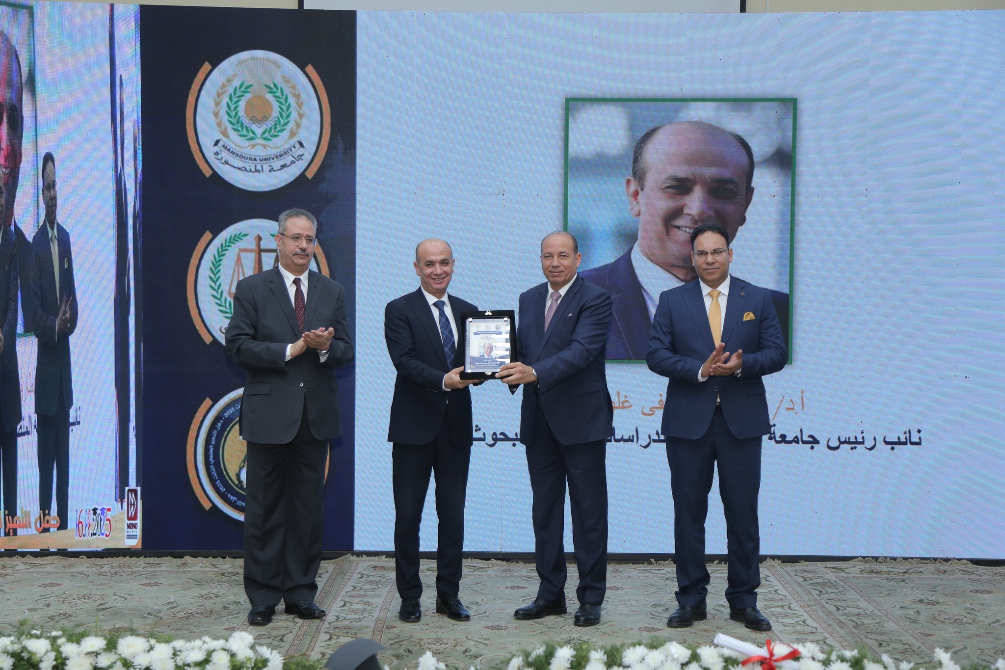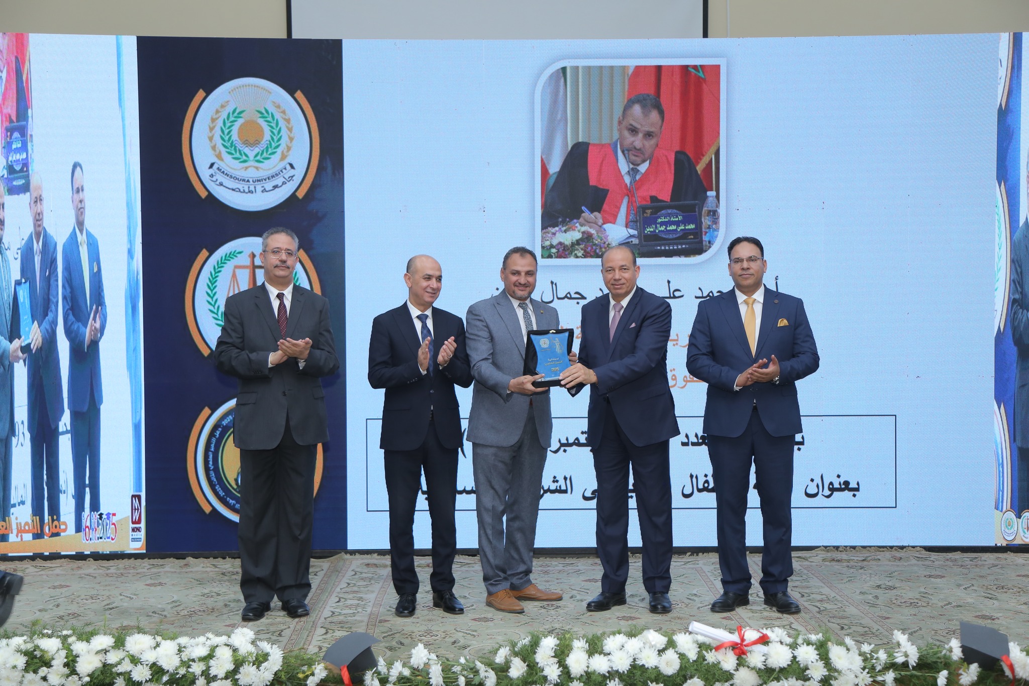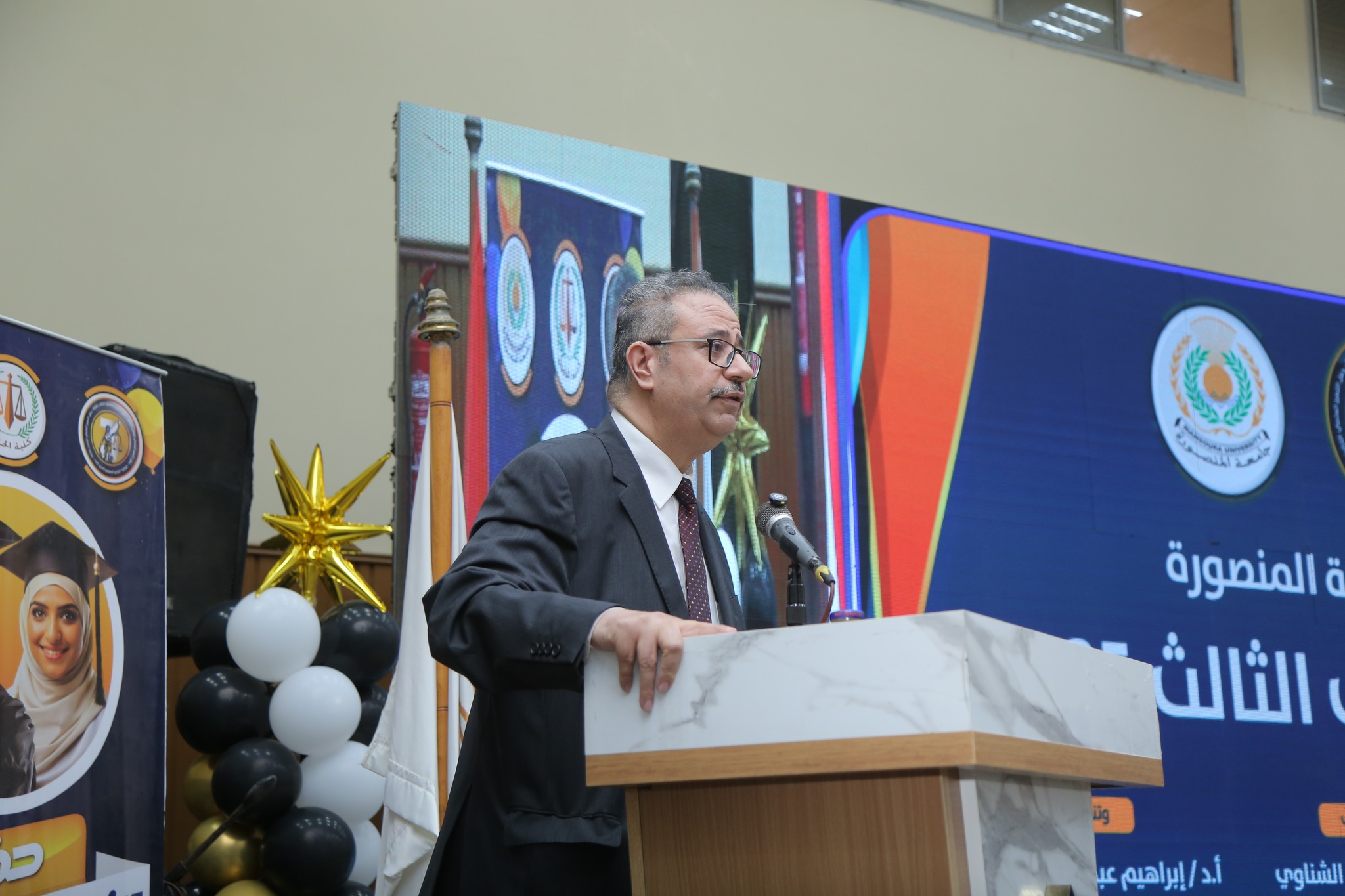 ومن جانبه، أكد الدكتور طارق غلوش، نائب رئيس الجامعة للدراسات العليا والبحوث، أن كلية الحقوق بجامعة المنصورة تمثل نموذجًا يُحتذى على مستوى الكليات، بما حققته من انضباط أكاديمي وجدية والتزام مستمر بمعايير الجودة. وأشار إلى أن التميز في أي مؤسسة تعليمية "لا يتحقق إلا حين يتحول إلى شغف يومي تُمارسه الكوادر الأكاديمية والطلابية بروح من الانضباط والتواضع والمسؤولية"، مؤكداً أن كلية الحقوق استطاعت أن تجمع بين هذه القيم جميعًا، مما جعلها في طليعة الكليات القادرة على تحقيق الريادة العلمية وإعداد خريجين يتمتعون بكفاءة معرفية ومهنية رفيعة.