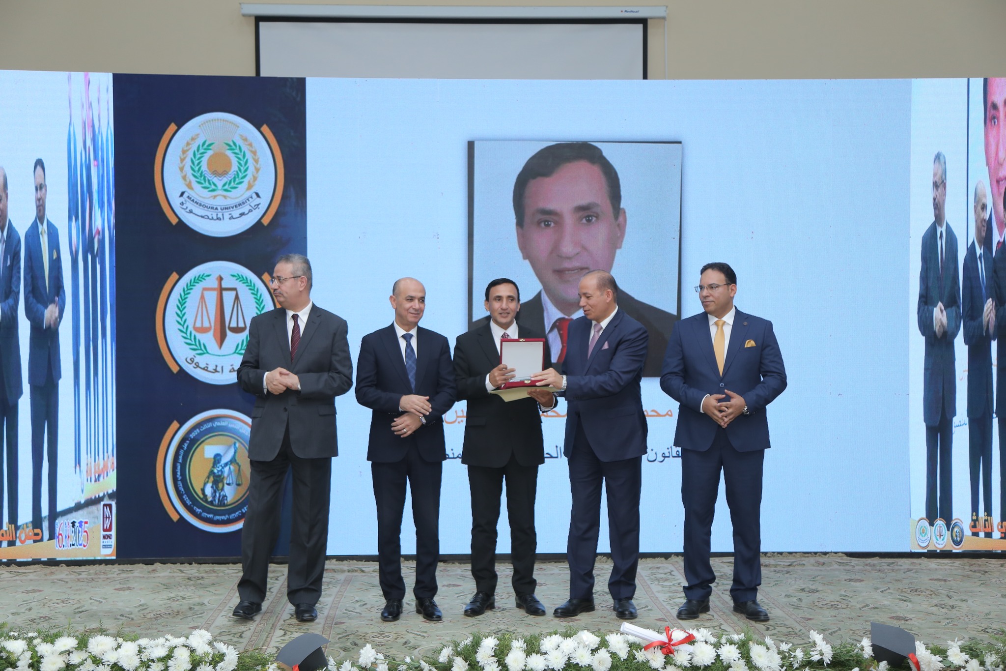 وشهد الحفل تكريم الدكتور شريف خاطر، رئيس الجامعة، والدكتور طارق غلوش، نائب رئيس الجامعة، كما تضمن تكريم الدكتور أحمد جمال الدين موسى، وزير التربية والتعليم والتعليم العالي الأسبق، والدكتور السيد عبد الخالق، وزير التعليم العالي الأسبق، إلى جانب تكريم الأقسام العلمية المتميزة، وأفضل الأبحاث المنشورة بمجلة الكلية وفقًا لنسب الاستشهادات، وأعضاء هيئة التدريس الحاصلين على درجة الدكتوراه خلال عام 2024/2025، وأعضاء الهيئة المعاونة الحاصلين على درجة الماجستير خلال العام ذاته، والباحثين المتميزين والفائزين بتمويل مشروعاتهم البحثية من صندوق البحوث والمهمات العلمية، والحاصلين على جوائز على المستويين الجامعي والدولي، فضلًا عن الباحثين الوافدين المتميزين من الدول العربية الشقيقة، والحاصلين على درجة دبلوم القانون 2024/2025.