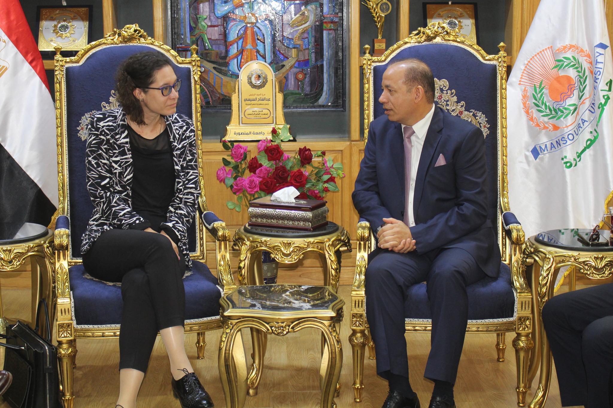 Dr. Cherif Khater, President of Mansoura University, hosted Dr. Rita Victoria Harencsár, the Ambassador of Hungary, to discuss strengthening academic and scientific cooperation. The meeting, also attended by Vice President Dr. Tarek Ghalwash, focused on enhancing partnerships with Hungarian universities through joint research, shared degree programs, scholarships, and student/faculty exchanges.