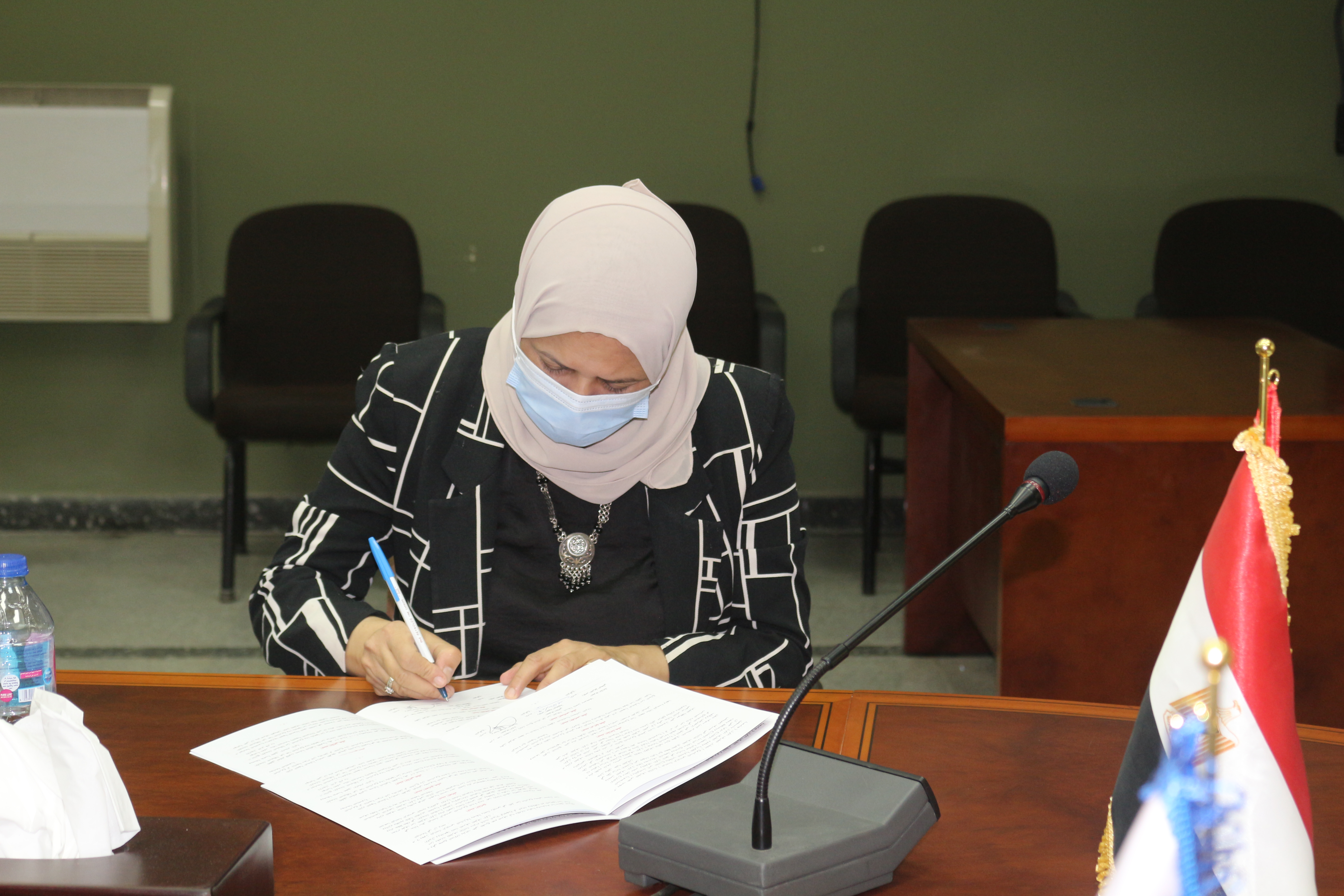تم توقيع العقود بحضور السادة عمداء ووكلاء الكليات المعنية والسيدة الأستاذة/ نشوى عبد الوهاب مؤمن- مدير عام إدارة البحوث