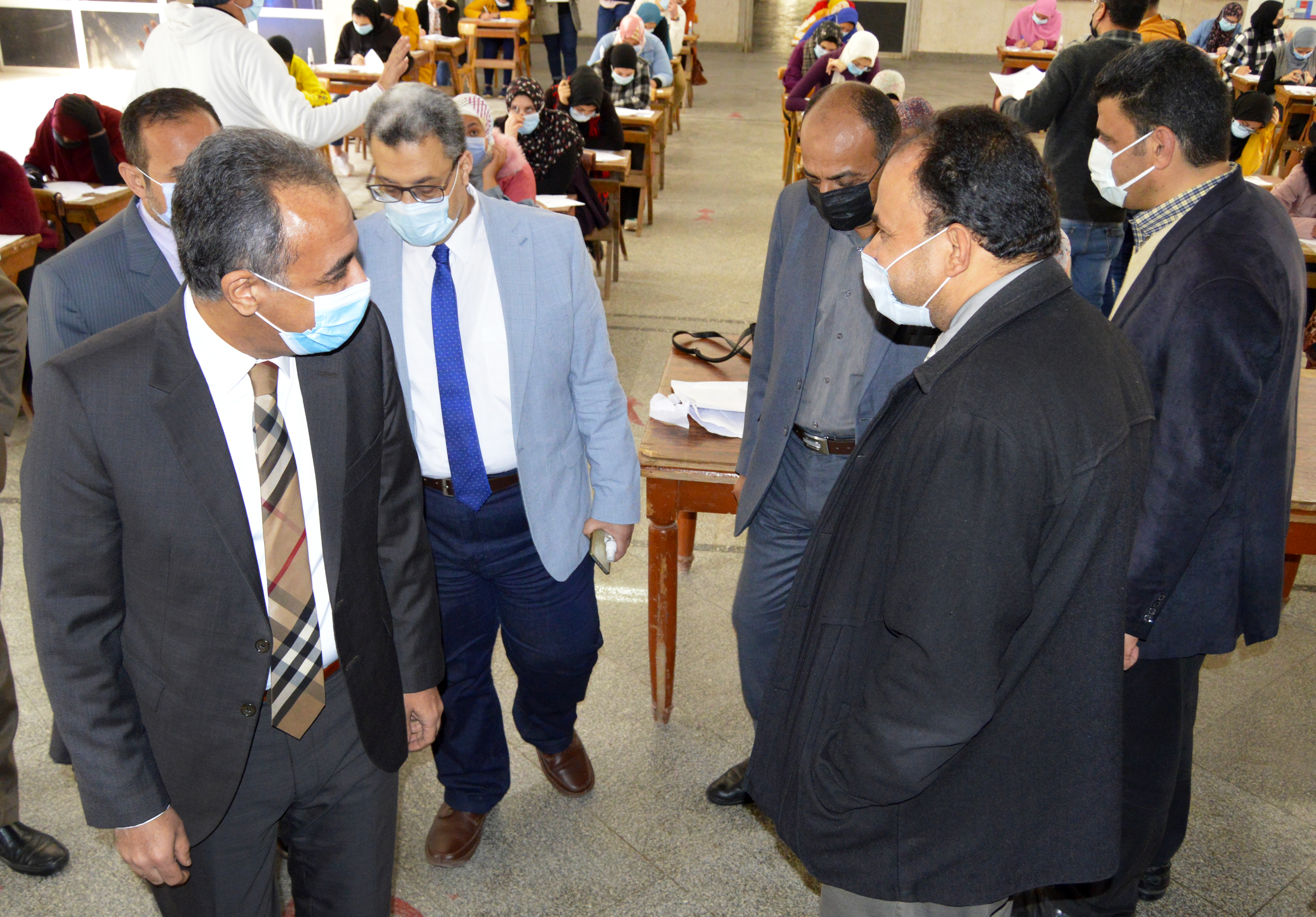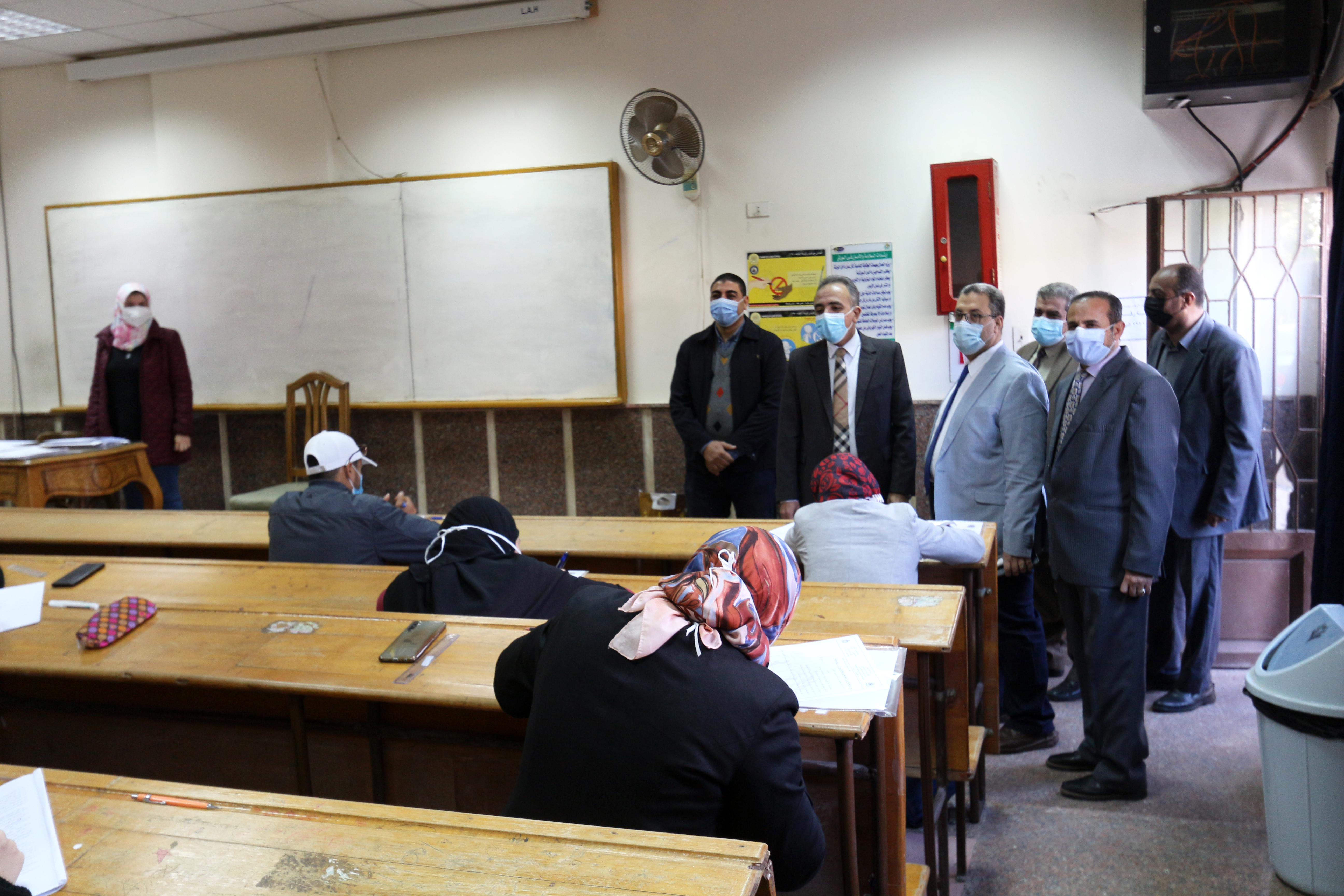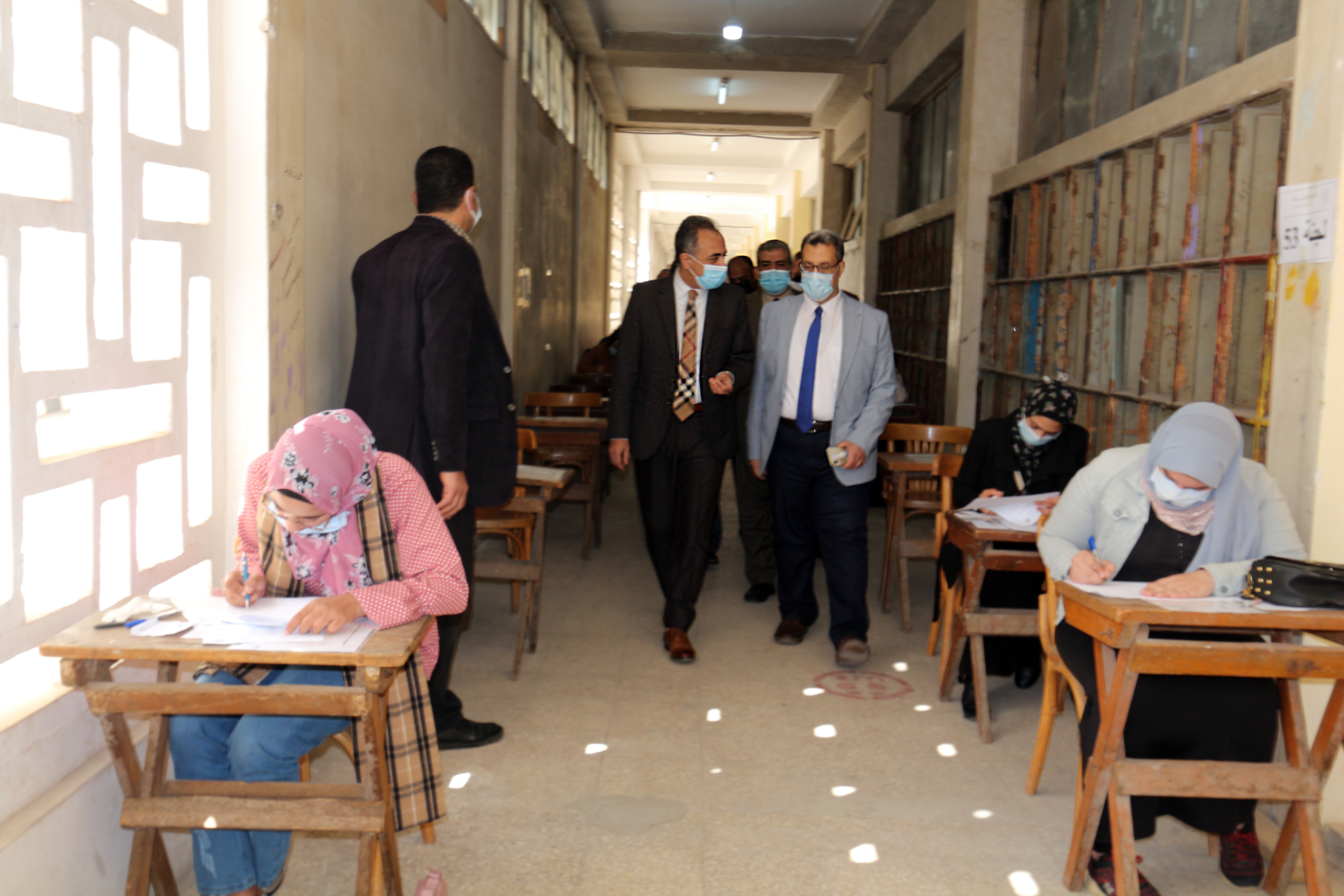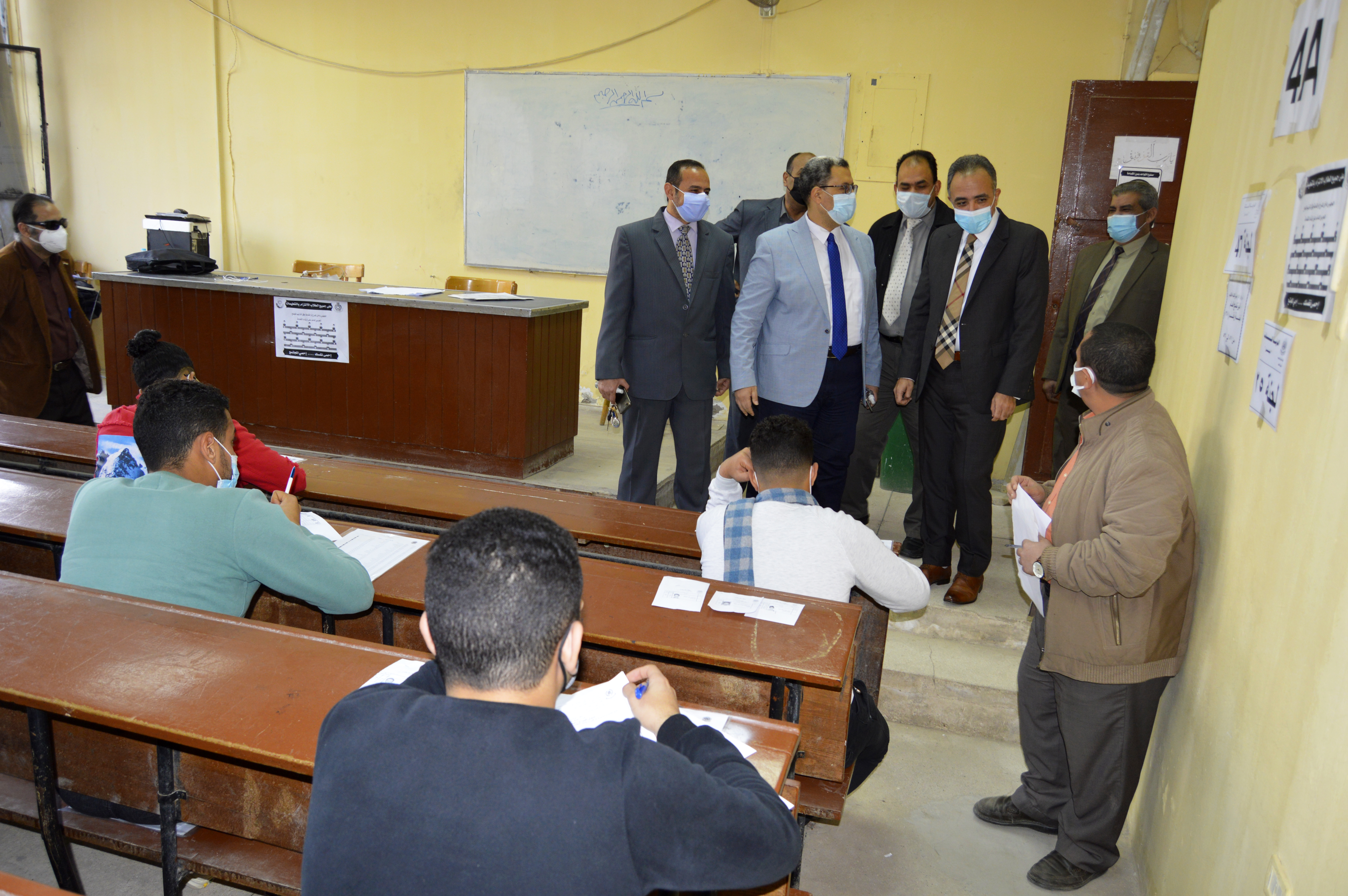 تفقد أ.د/ أشرف حافظ نائب رئيس الجامعة للدراسات العليا لجان امتحانات كليتى الزراعة والعلوم بمرافقة السادة العمداء والوكلاء بكل كلية ، حيث اطمأن على اتخاذ كافة التدابير الاحترازية والوقائية داخل اللجان بالإضافة إلى التزام الطلاب بالتعليمات الوقائية وعدم وجود أى مشكلات أثناء تأدية الامتحانات , ويأتى ذلك استكمالا لجولاته سيادته اليومية لمتابعة سير أعمال امتحانات الفصل الدراسى الأول للعام الجامعى 2020/2021 وسط إجراءات وقائية مشددة داخل اللجان لمواجهة تداعيات جائحة كورونا.