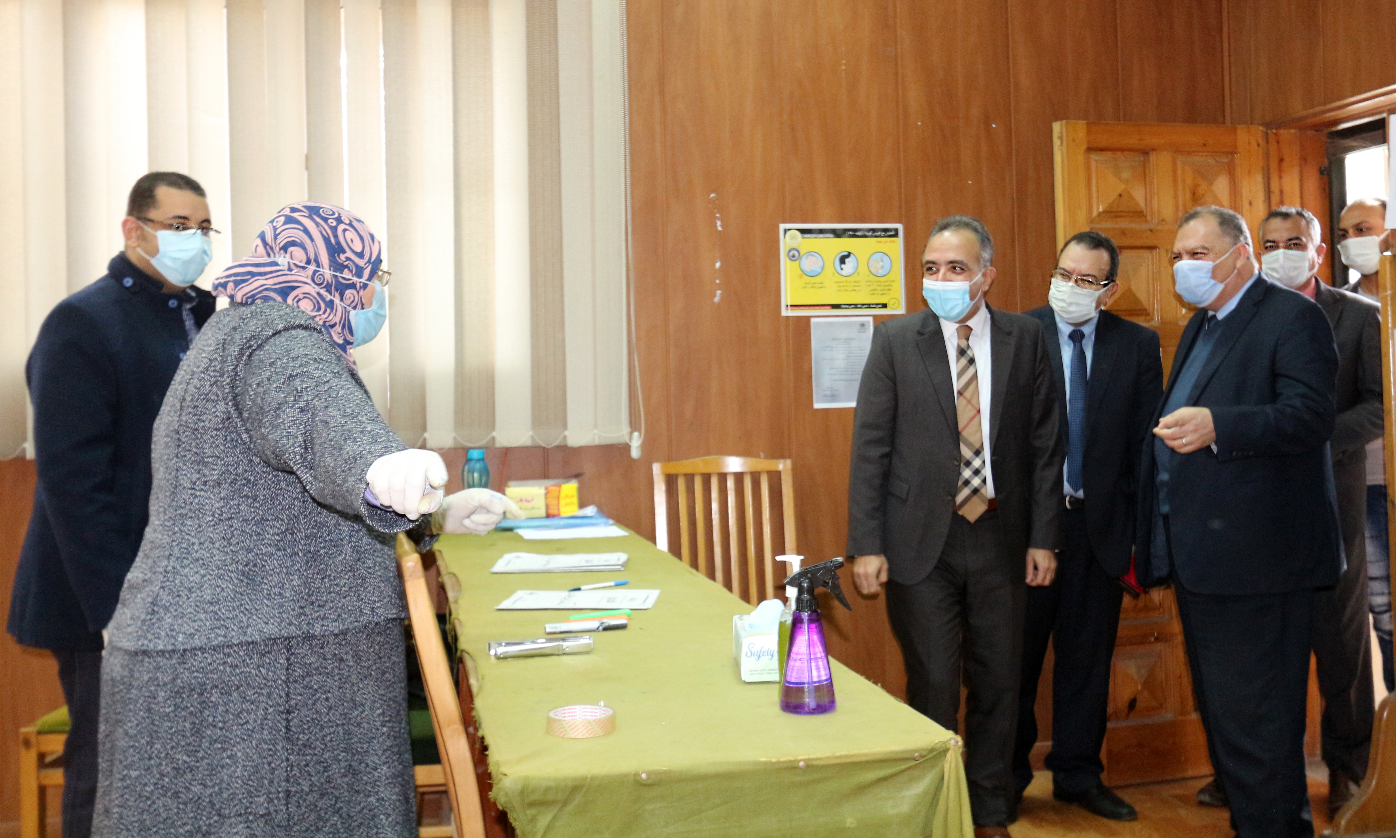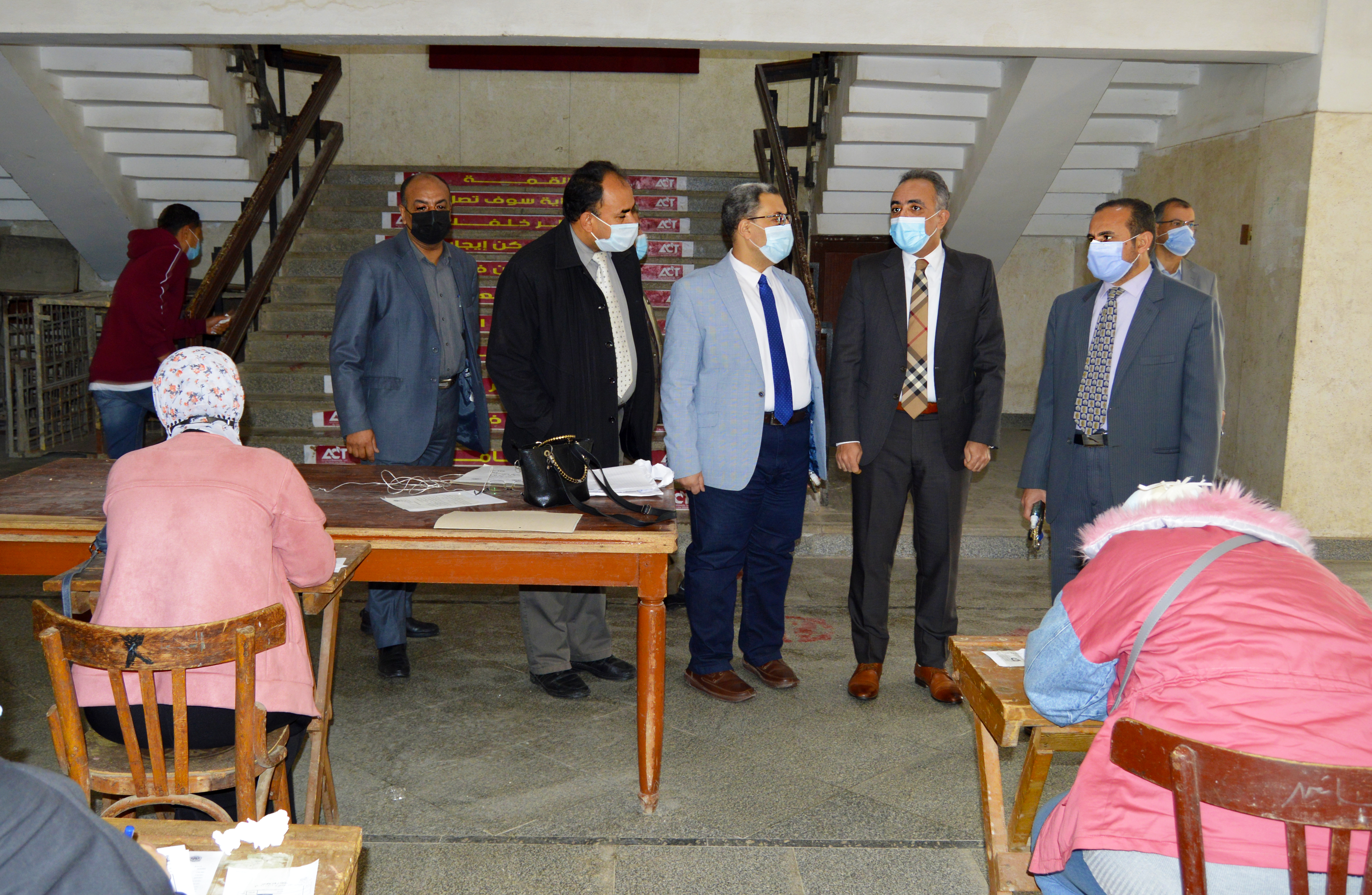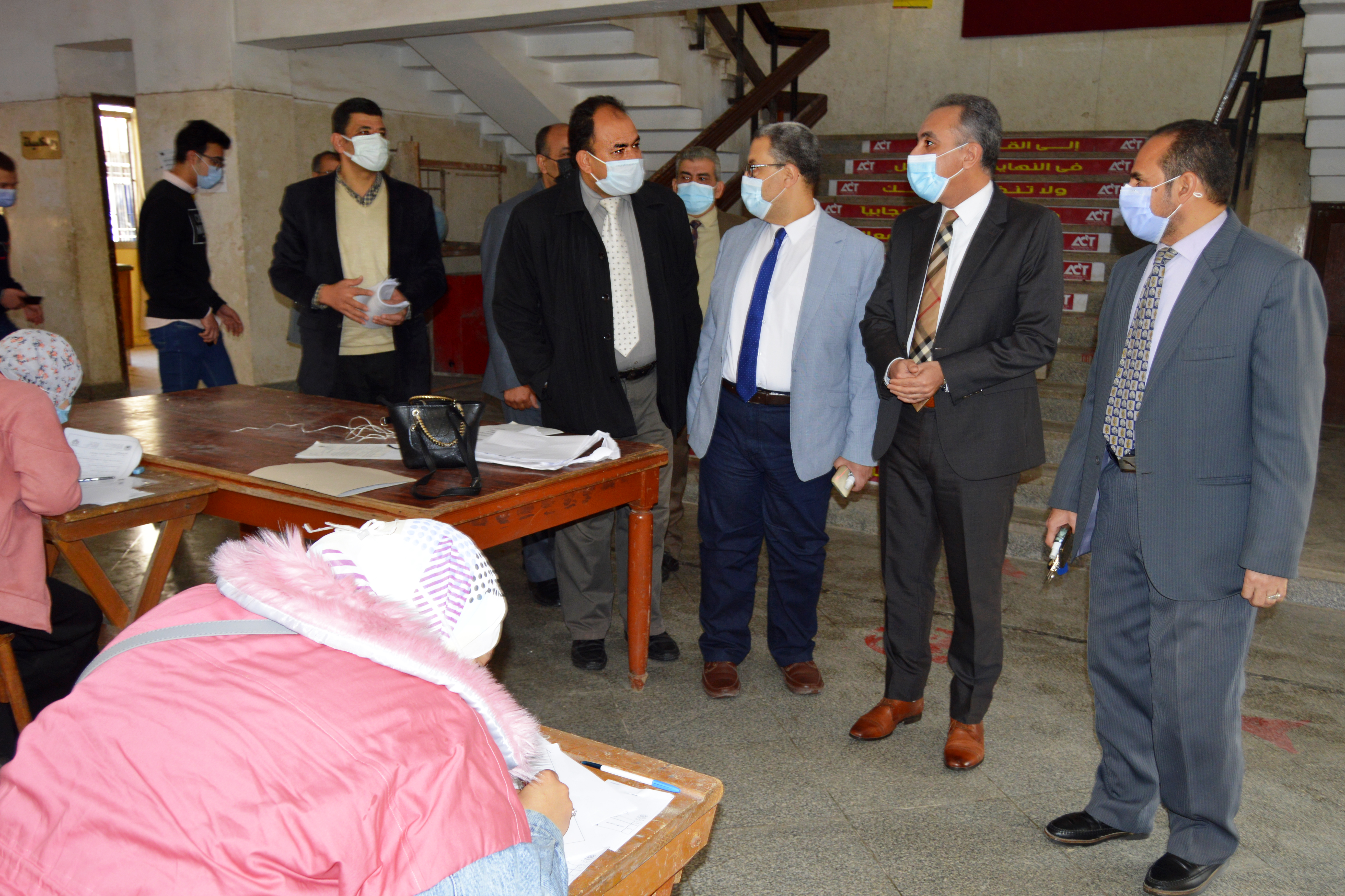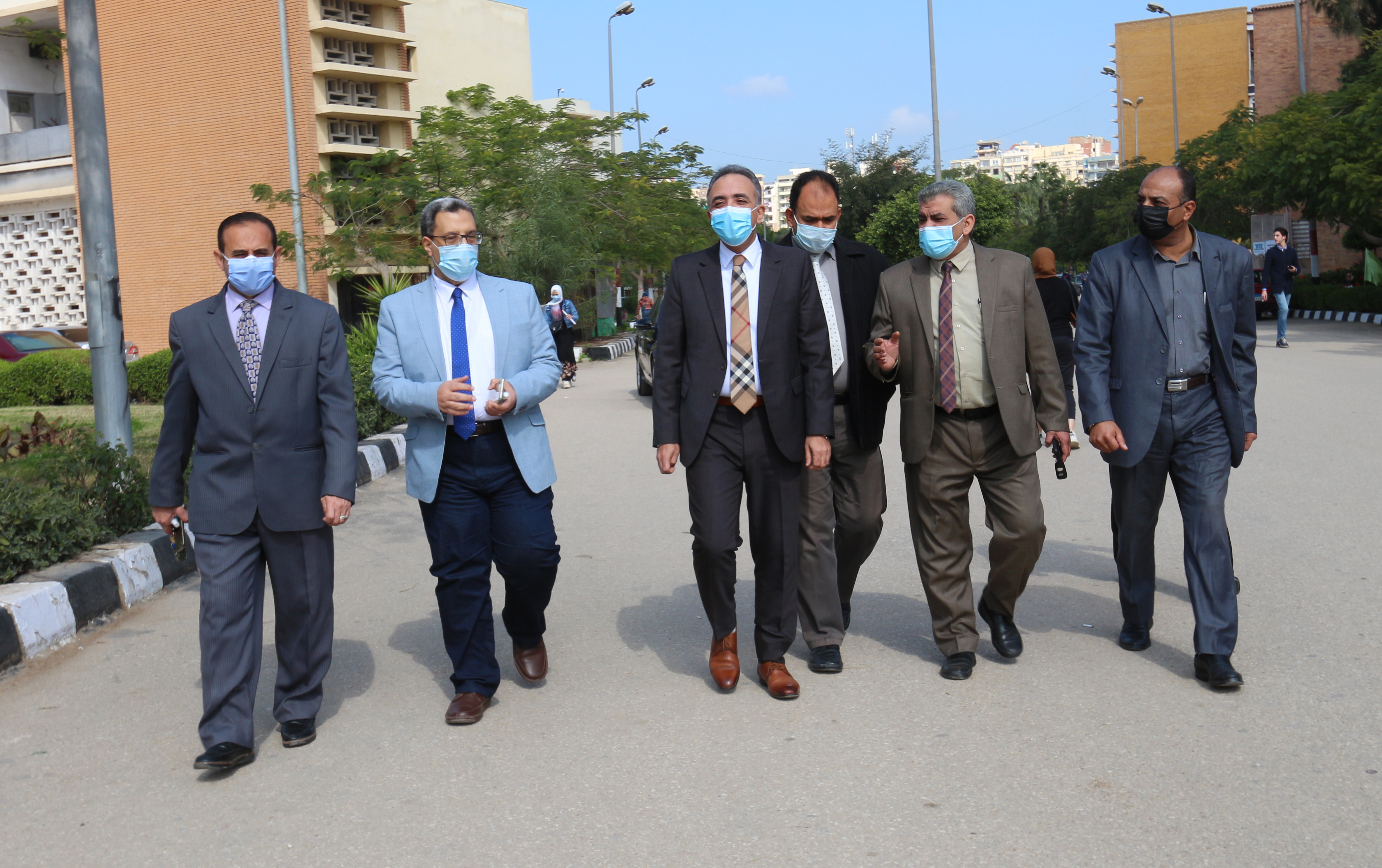 تفقد أ.د/ أشرف حافظ نائب رئيس الجامعة للدراسات العليا لجان امتحانات كليتى الزراعة والعلوم بمرافقة السادة العمداء والوكلاء بكل كلية ، حيث اطمأن على اتخاذ كافة التدابير الاحترازية والوقائية داخل اللجان بالإضافة إلى التزام الطلاب بالتعليمات الوقائية وعدم وجود أى مشكلات أثناء تأدية الامتحانات , ويأتى ذلك استكمالا لجولاته سيادته اليومية لمتابعة سير أعمال امتحانات الفصل الدراسى الأول للعام الجامعى 2020/2021 وسط إجراءات وقائية مشددة داخل اللجان لمواجهة تداعيات جائحة كورونا.