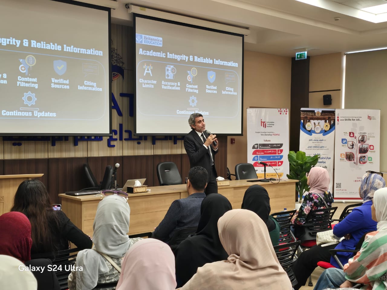 افتتح المنتدى أ.د/ طارق مصطفى غلوش نائب رئيس الجامعة لشؤون الدراسات العليا والبحوث يومي، حيث أكد في كلمته على أهمية المنتدى كمنصة وطنية تجمع بين الجامعات المصرية ودور النشر العالمية، مشيرًا إلى أن المنتدى يمثل خطوة مهمة نحو تعزيز التحول الرقمي في منظومة البحث العلمي، وتمكين أعضاء هيئة التدريس والباحثين من أدوات النشر الدولي والمصادر الرقمية الحديثة.