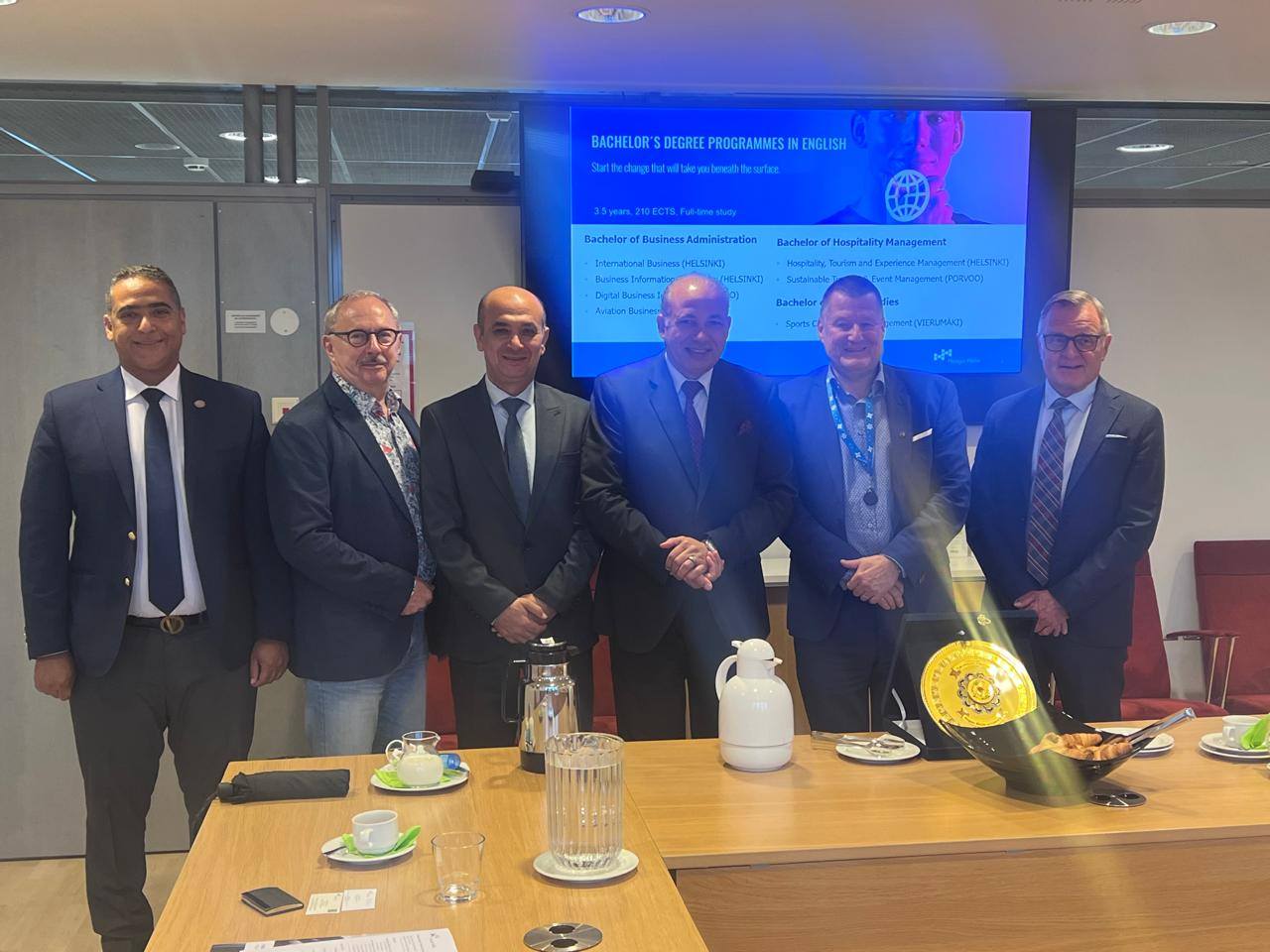 شملت الزيارة عقد لقاء مع السيدة (Outi Hakanen)، سفيرة التعليم الفنلندي بوزارة الخارجية، كما عُقد لقاء مع البروفيسور (Teemu Kokko)، رئيس جامعة هاغا-هيليا، والبروفيسور (Jouni Ahonen)، نائب رئيس الجامعة للشؤون التجارية والدولية، والسيد (Risto Vahanen)، المؤسس ورئيس مجلس إدارة مؤسسة التعليم الدولي الفنلندي، وبحضور الدكتور كريم الصفتي، المدير الإقليمي التنفيذي لاتحاد التعليم الدولي الفنلندي (FCIE) ومنسق الزيارة.