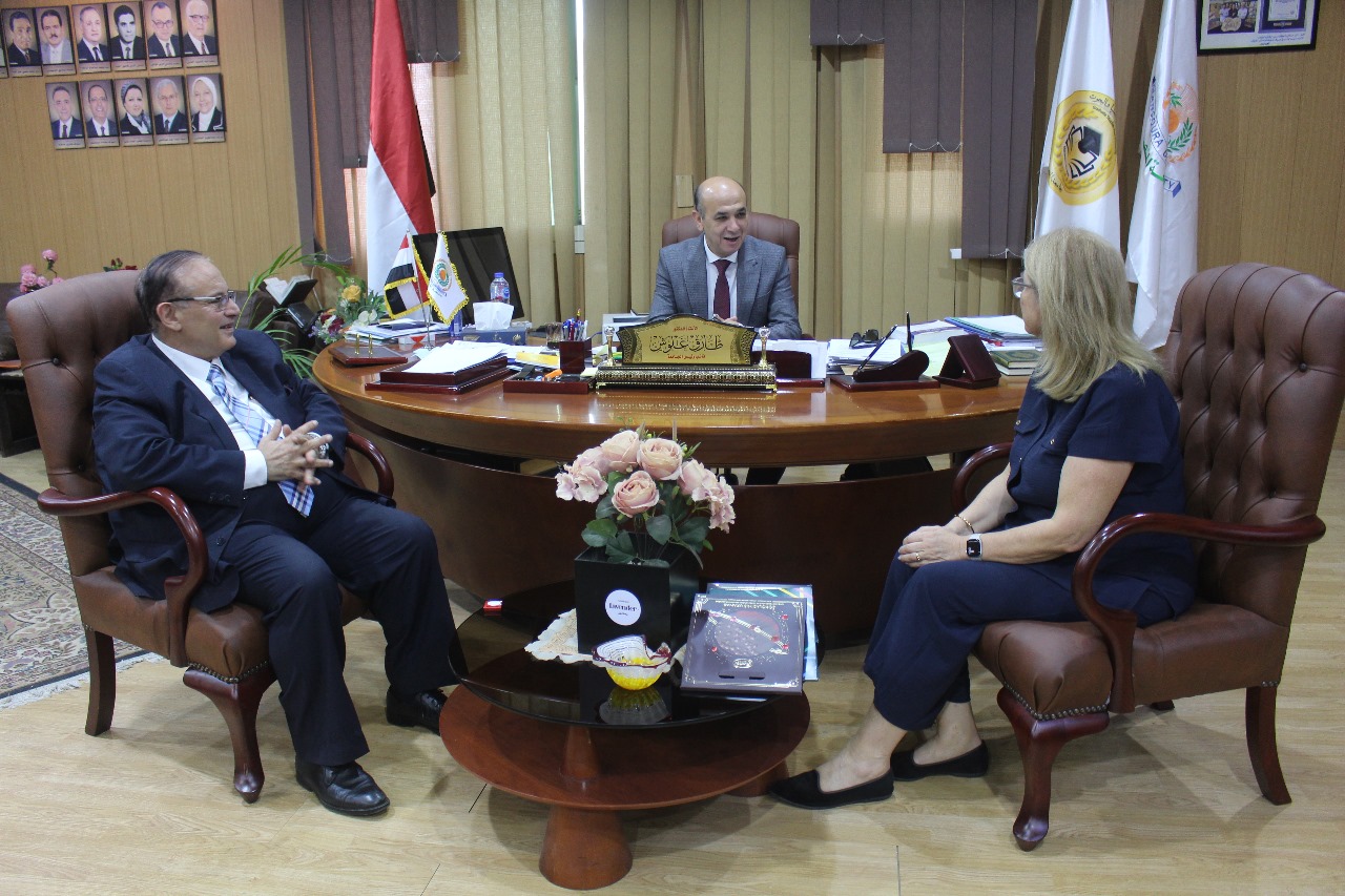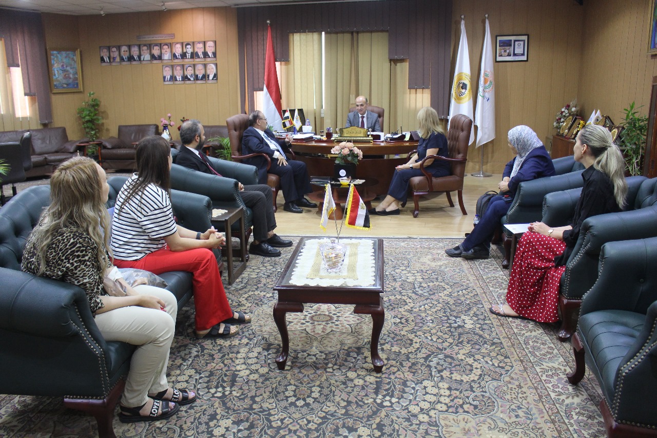 حيث رحب الأستاذ الدكتور/ طارق غلوش بالضيوف واستعرض الإمكانيات البحثية والخدمية التي يمكن لجامعة المنصورة تقديمها لتعميق الشراكة بين الجامعتين، خاصة في المجالات الطبية.