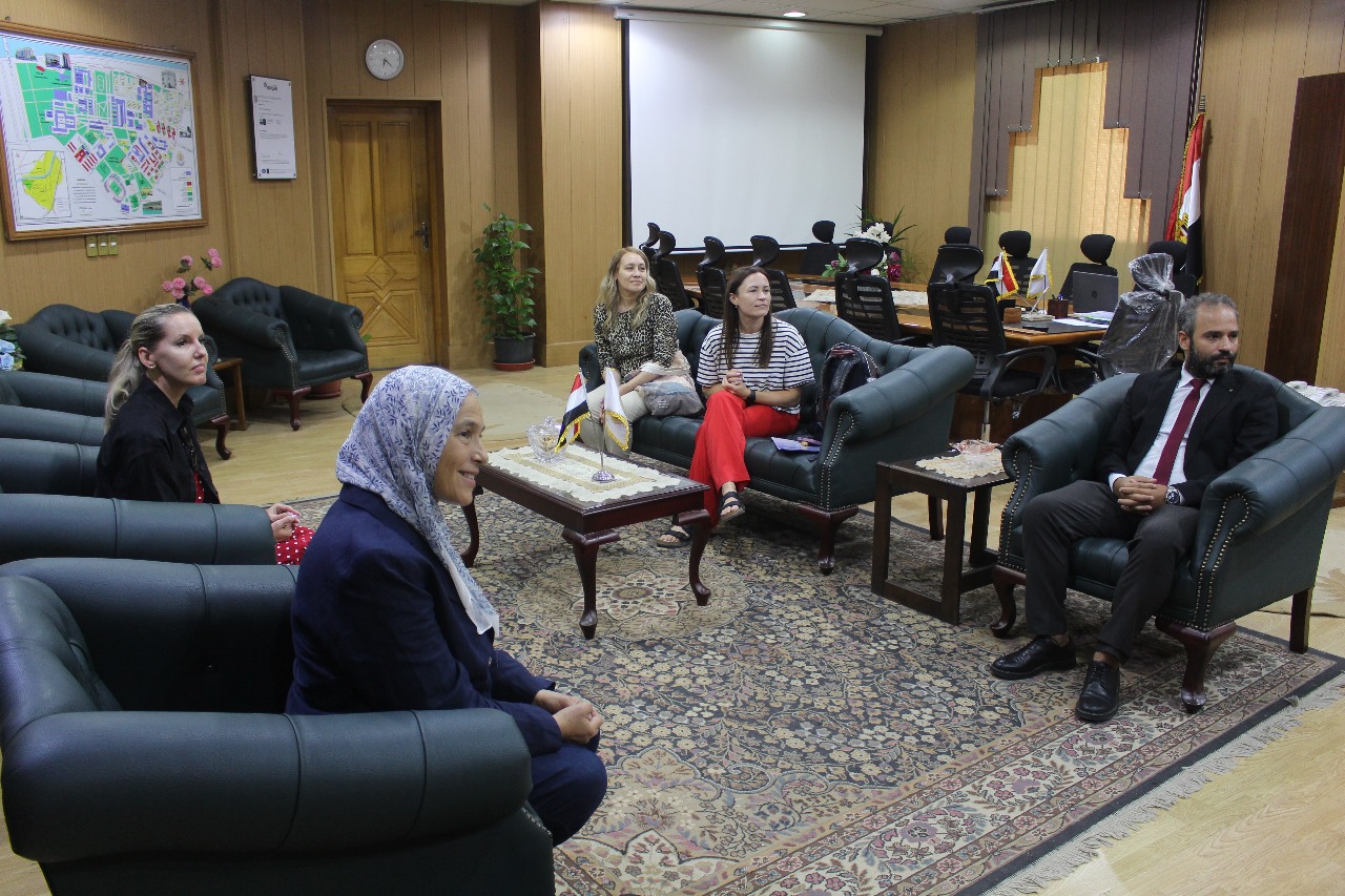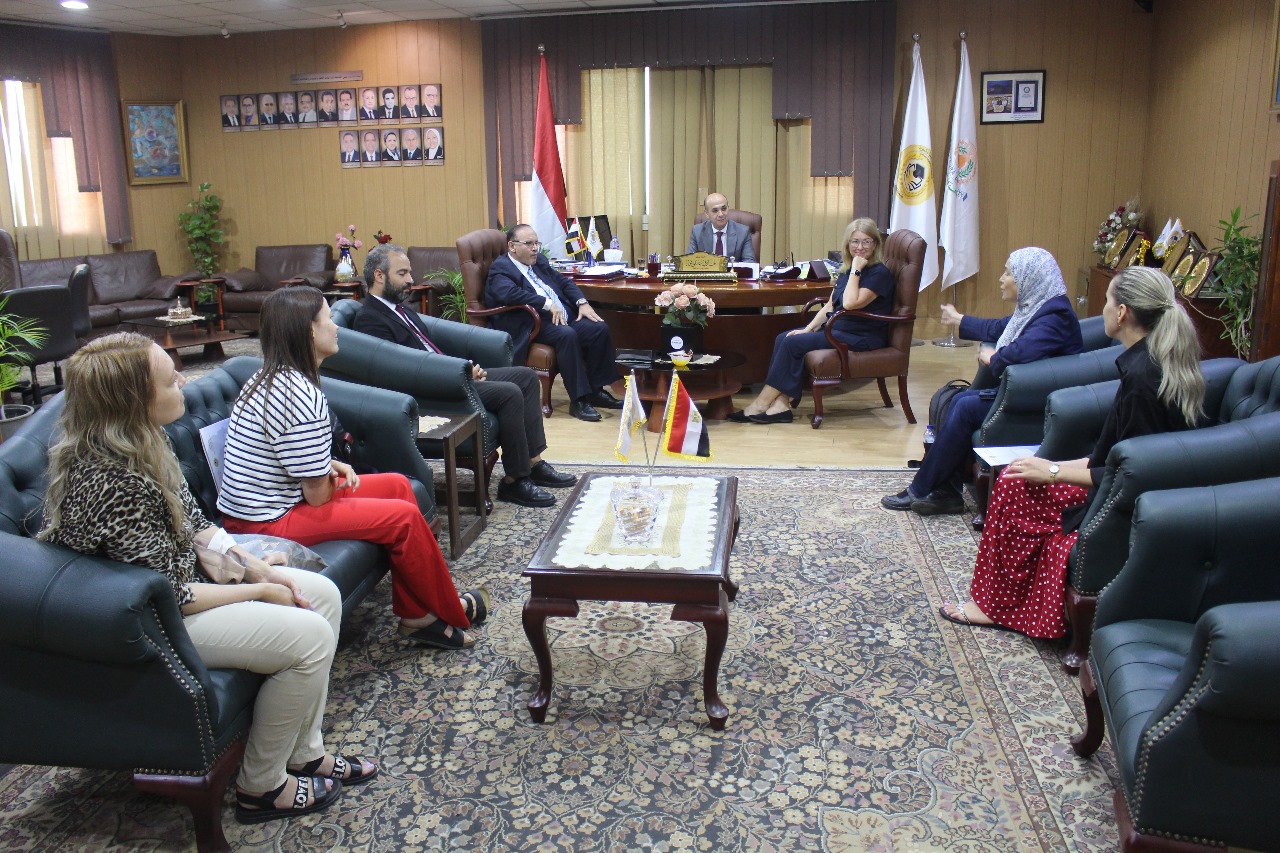 استقبل السيد الأستاذ الدكتور/ طارق غلوش، نائب رئيس جامعة المنصورة للدراسات العليا والبحوث، وفداً من أكاديمية ليبايا بجامعة ريجا التقنية (RTU Liepaja Academy) بدولة لاتفيا يضم البروفيسورة/ بايبا ترينيت أستاذة أمراض النطق واللغة، وعدد من طالبات الدراسات العليا بالإضافة إلي الأستاذة الدكتورة/ علياء علي خضر أستاذة أمراض التخاطب بجامعة عين شمس وجامعة فيرجينيا بالولايات المتحدة الامريكية، وذلك في إطار برنامج الاتحاد الأوروبي "إيراسموس بلس" لتبادل الطلاب والأساتذة وذلك بحضور السيد الأستاذ الدكتور/ تامر أبو السعد، الأستاذ المتفرغ بقسم الأذن والأنف والحنجرة ووكيل كلية الطب لشئون الدراسات العليا والبحوث السابق والسيد أ.م.د/ شادي عوني، نائب مدير مكتب العلاقات الدولية.