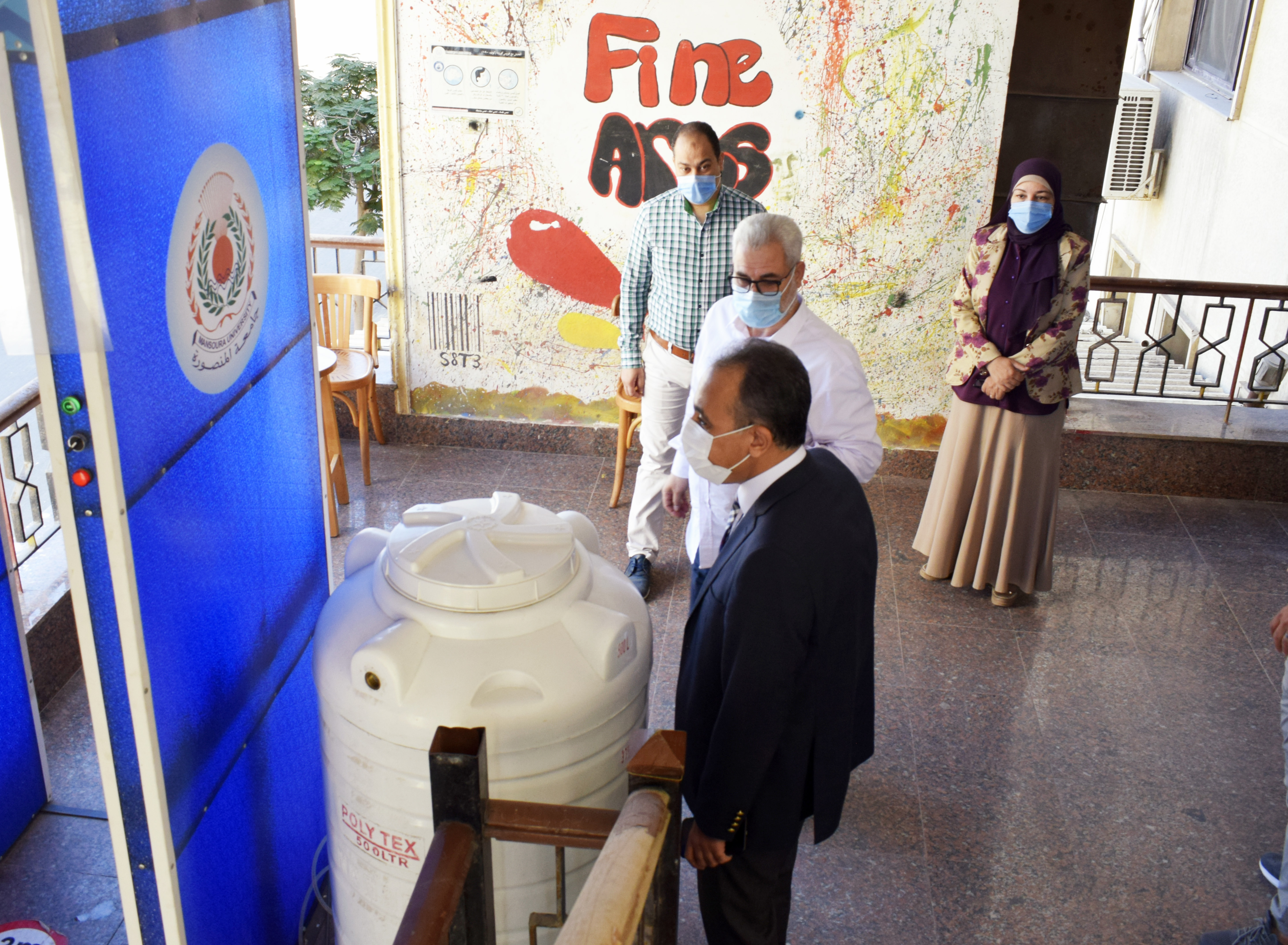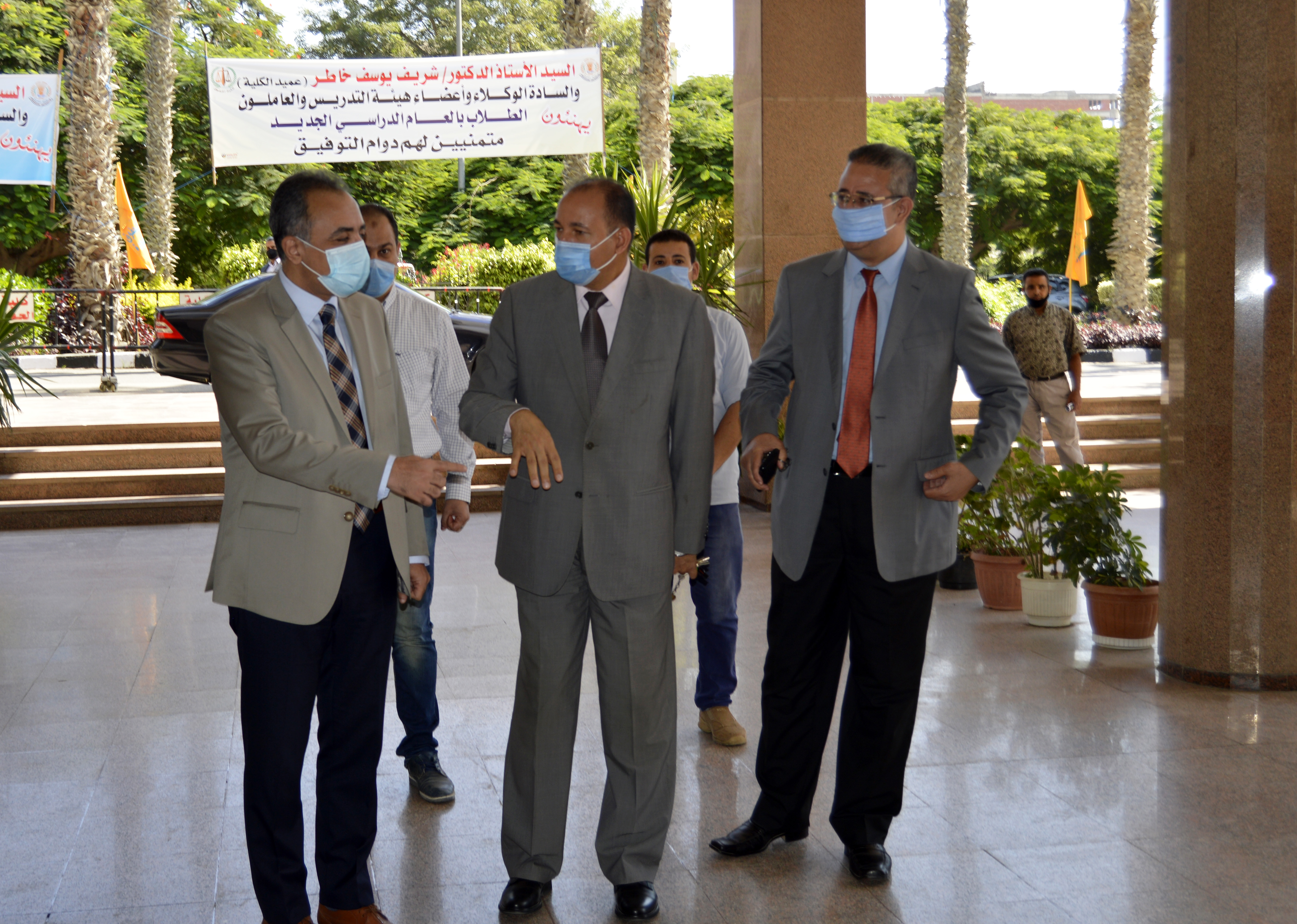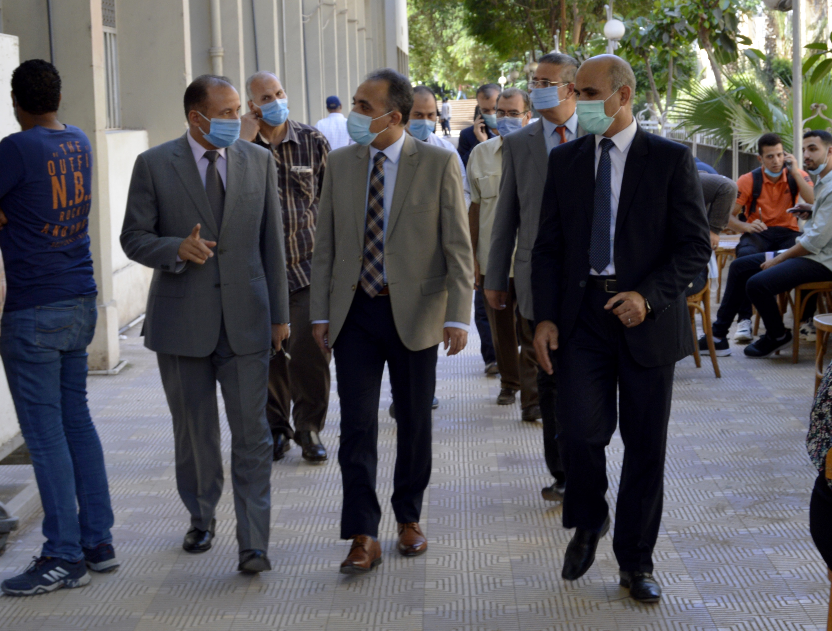 منها منع الدخول بدون الكمامات للطلاب، إلى جانب وضع بوابات للتعقيم و انتشار الكواشف الحرارية على بوابات الأمن لاستقبال الطلاب والحفاظ على التباعد الاجتماعي، والتعامل مع حالات الاشتباه أو الإصابة بفيروس كورونا المستجد وفقاً للبروتوكولات المعمول بها من وزارة الصحة، و تخصيص أماكن للعزل داخل كل كلية للفرز والعزل المؤقت لحالات الاشتباه بالإصابة بفيروس كورونا المستجد , مشددا على ضرورة اتخاذ كافة الإجراءات الاحترازية والوقائية لمواجهة فيروس كورونا ومتابعة أعمال التعقيم والتطهير للمدرجات والقاعات والمعامل داخل كليات الجامعة .